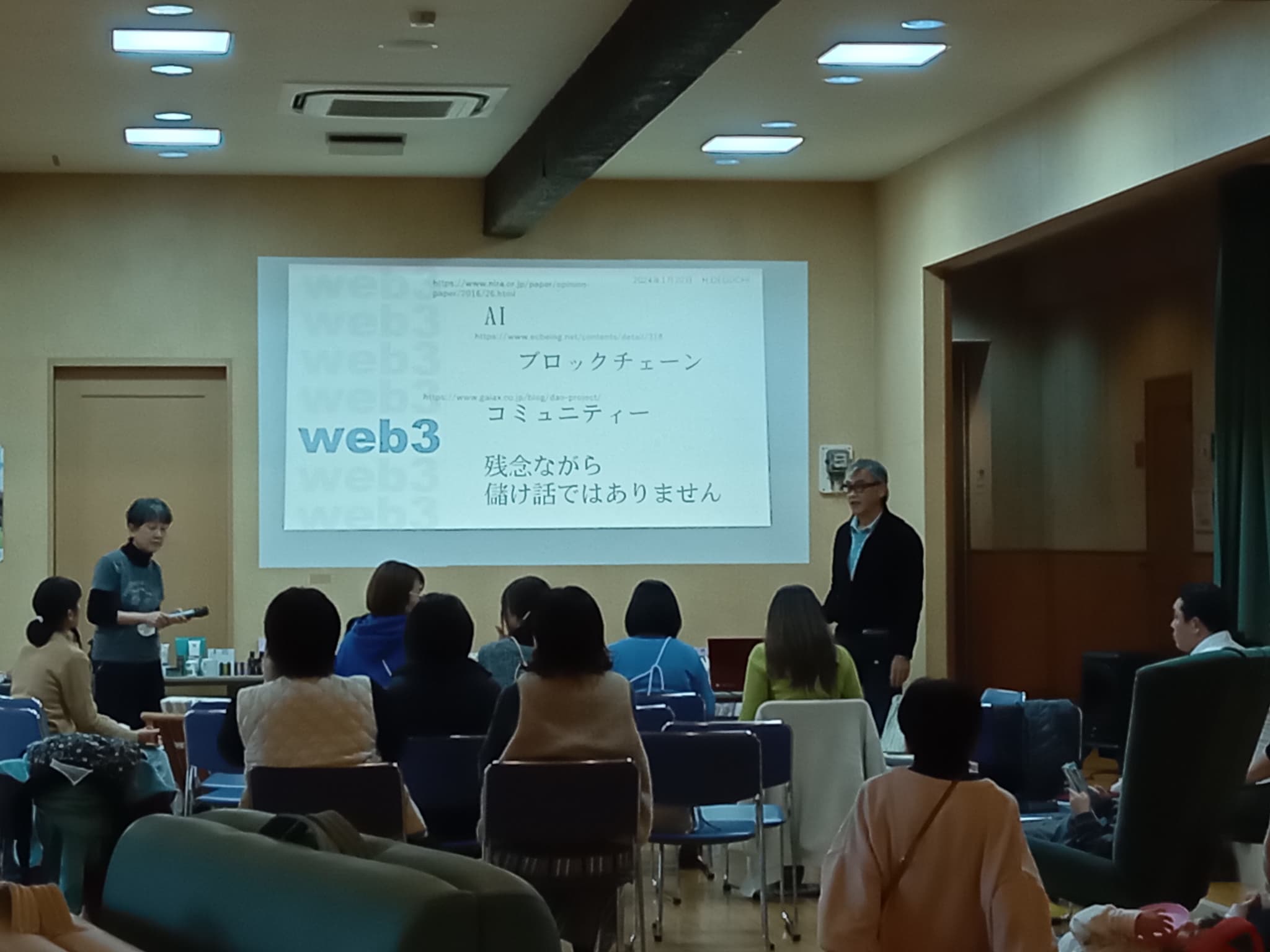 通常、皆様食堂で会議をなさっています いつでも利用可能(スクリーン完備)